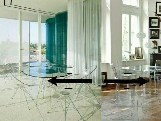 The reflective surfaces give the illusion of a continuous space, tricking the eye into seeing a room that feels much bigger.