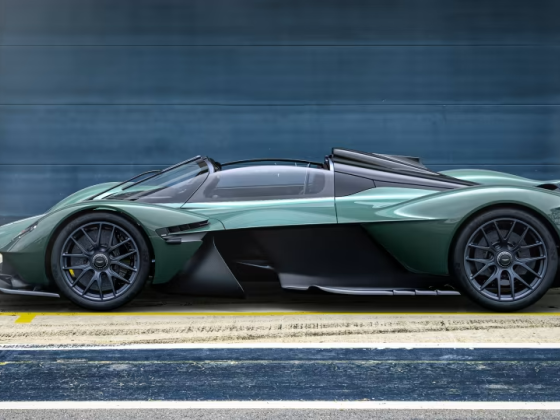 Revealed by Aston Martin at the Pebble Beach Concours d’Elegance event in California, the Valkyrie Spider trades the coupe’s fixed roof for a removable carbon-fibre panel (latched onto the windscreen surround and rear bodywork) and two hinged polycarbonate side windows. Read full automotive article here.