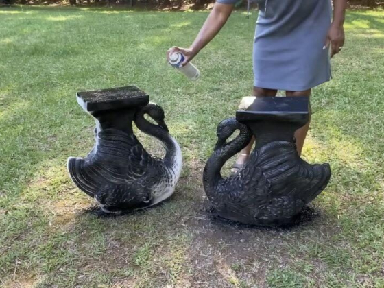 I went ahead and picked up two swans for decor, and although they are beautiful in white, I preferred to have them in black. I knew that I wanted to go ahead and get these spray-painted black.
