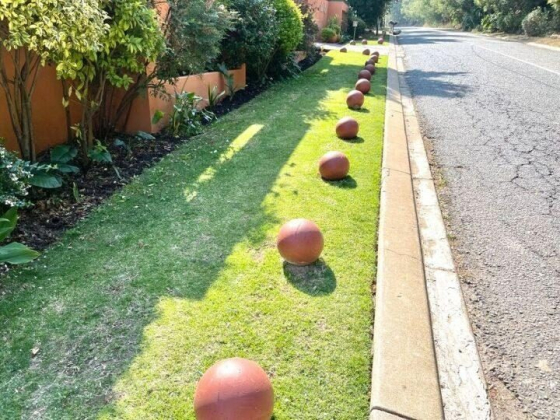 Then it struck me, people in other countries aren't so selfish with their pavements (sidewalks). Here, orbs are used as bollards to keep people from parking in front of your house. Illegal but very common. So actually you should be glad that you can't find them!