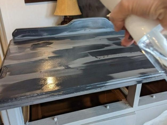 Here’s a super quick tutorial how to paint faux driftwood, like I did on this dresser top.