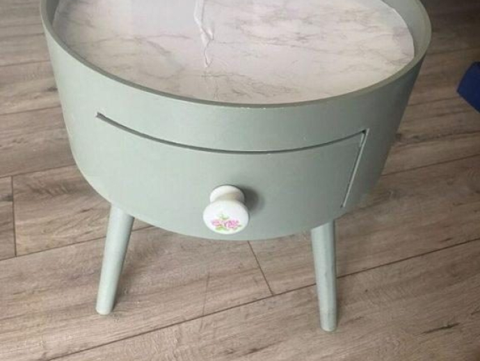 So if you scroll back on my page you’ll see I already painted this little table before - but my mam was fed up of it so I took it off her hands and painted it and added gorgeous wall paper and now she wants it back!!!!