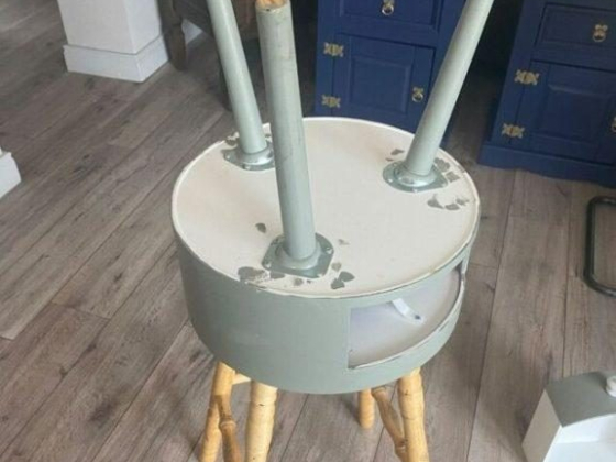 My “painting” stool fitted perfect to get it off the ground to paint the legs