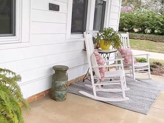 The ceilings were caving in, water damage was abundant, and the house was in ruin. You can hardly tell by looking at it now. Even the front porch looks amazing.