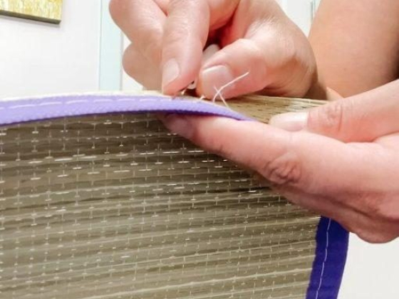 I bought this dollar store beach mat and turned it into blinds for our door!