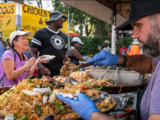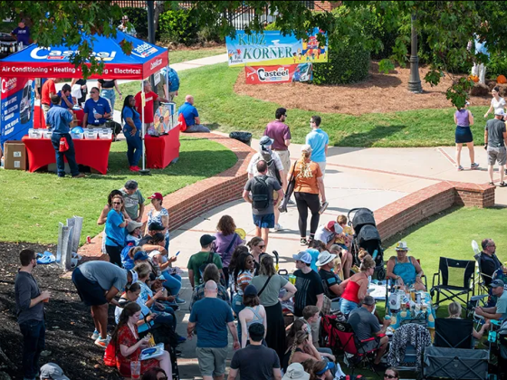 Live acts on two stages—Festival Center Stage and Parsons Alley Stage—featuring over 20 performers, including bands, dance troupes, puppeteers, and more