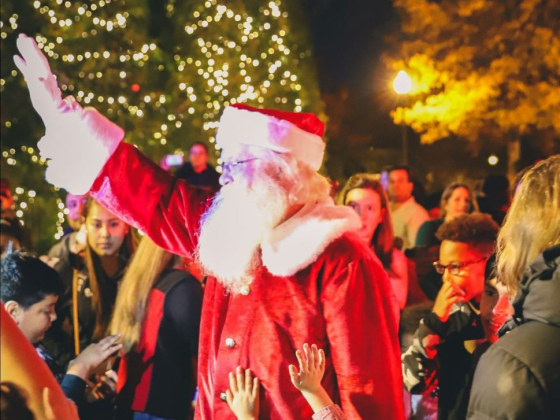 Enjoy free hot cocoa and s’mores (while supplies last) and watch a holiday classic movie on the big screen while you wait in line to meet Santa. A local group of Disney princess performers (as well as the one, the only, The Grinch) will also be on hand to add to the Christmas magic.