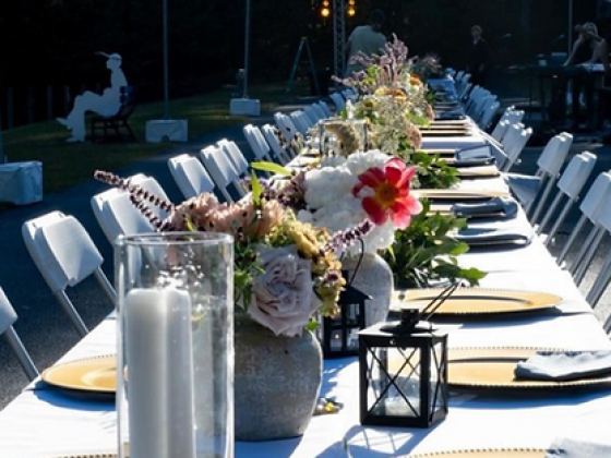 The Dam Dinner with its tongue-in-cheek name, pokes fun at the fact that the event will be held on the Dam at Sims Lake Park. This dinner is a fundraising event to support the programs and continuation of the Suwanee Arts Center.