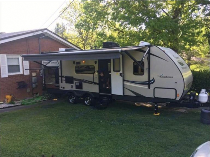Led lights tv shower queen bed and outside kitchen 2 fridges and stoves.