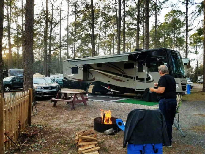 The rv has double slides and one and a half baths, it will almost feel as though you haven't left home . Three tv's with DVD players for your enjoyment . Included are two outdoor chairs ,campfire tongs and a outdoor rug. The kitchen has double sink , three burner range , a full size refrigerator with ice maker , microwave and a booth dinette and storage for the whole family . The living area has a L shaped sofa and electric fireplace.