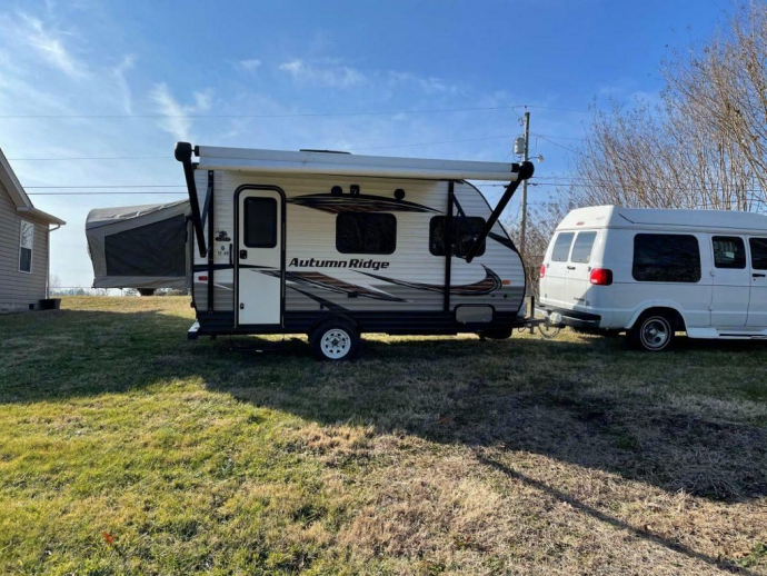 Well kept hybrid travel trailer with space to sleep 4, possibly 5.