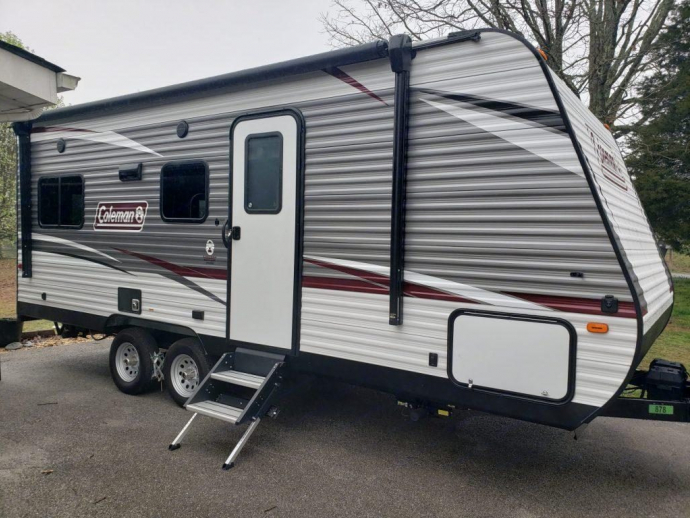 Brand new camper with everything you need to have a wonderful family time camping. Modern hardwood floors, blankets, sheets, pots, pans, dishes, and silverware. I've also included hitch for 1/2 ton pickup or SUV.