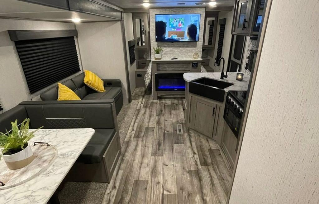 - The camper is also equipped with a stereo system that allows for audio zoning and Bluetooth connectivity.