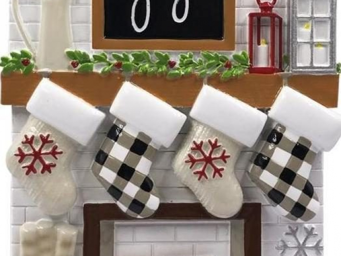 5" Fireplace Mantle Stocking Family of 4 Personalized Christmas Ornament