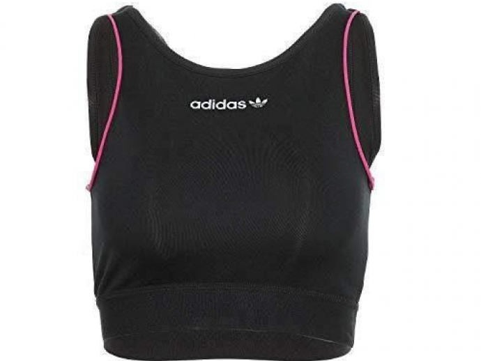 '90s inspired sportswear with a modern, technical edge. A low-cut back and contrast piping give this bra a sporty, chic look. The soft, stretchy build keeps it casual and comfortable. Women's sizing. 90% polyester / 10% elastane interlock Deep cutout on back Elastic hem, tight fit Round neckline