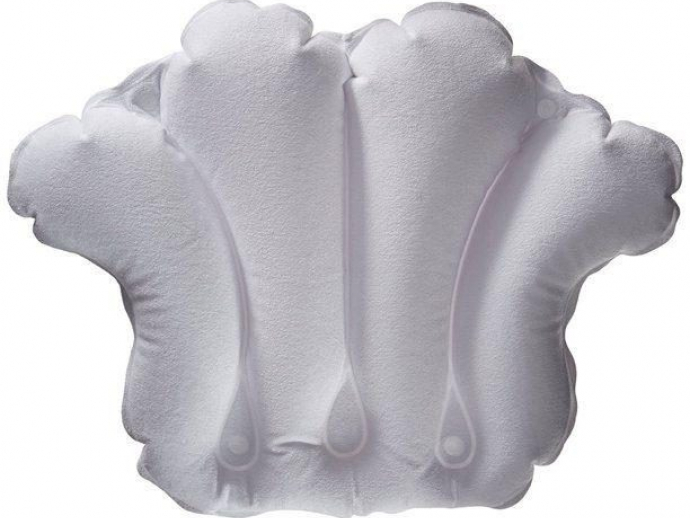 Aquasentials inflatable bath pillow, comfortable terry cloth, large size with 4 suction cups for secure holding.