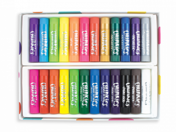 With Chunkies Paint Sticks, you can create colorful paintings without any mess. That's because the paint is encased inside a plastic barrel. Just twist up the paint stick and start painting! The Chunkies Paint Sticks Variety Pack has 24 colored paints. There's 12 classic paint colors, 6 metallic paint colors and 6 neon paint colors in one set. That's a lot of colorful paint! Chunkies makes for a great paint set for kids because the barrels are thick and are just the right size for little hands. Also the paint is quick drying and dries instantly when you lay it on paper so there's no mess at all. Chunkies Paint Sticks don't require any brush or water at all, just colorfully clean painting. Suitable for ages 3 and up. Care and use recommendations: Keep capped when not in use, to help prevent drying. Cover and protect your workspace. This product may stain some surfaces.