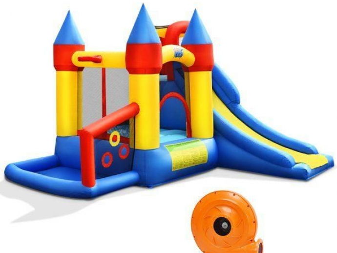 Our inflatable bounce house is a great gift for children and helpful to their growth and health and it is made of safe and durable oxford cloth, which meets most safety standards. It is very suitable for children to play and jump with a secure mesh wall around the jumping area to keep your child jumping safely. It consist of a sleek slide area, a safe jumping area and a wide play area equipped with 50 ocean balls to fully accommodate 4 children from 3 to 10 years old to play together at the same time. A blower allows the bounce house to inflate quickly without huge noise, and it is also easy to remove it by simply turning off the blower and letting it deflate and store it in the carrying case for convenient storage