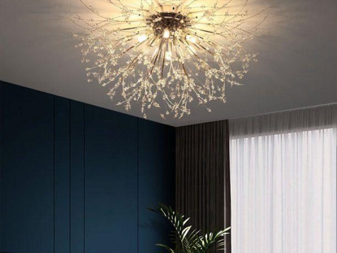 Firework Chandeliers, LED Crystal Modern Ceiling Light Fixtures 5 Lights Pendant Lighting Stainless Steel Ceiling Lamp for Living Room Bedroom Chrome