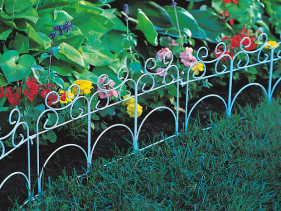 Create an 8 ft. border in your garden, pathway or yard using this border edging. Clean classic lines define each 14 in. high fence section, topped by a decorative scroll design. Each section easily interlocks with the tab on the side, allowing the border fence to be easily positioned. No additional tools required to install, simply press the legs into the soil. Ideal for defining growing spaces, keeping flower beds protected or adding a designer touch by surrounding trees or shrubs in your yard. Steel construction forms a lasting fence, and the powder coated finish protects the metal from the elements. Simple to re-position and store.