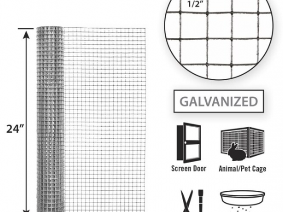 24in H x 10ft L galvanized hardware cloth features a 1/2 in square mesh weave and is both lightweight and durable. This is an extremely versatile product that can be used for a number of applications, including animal containment, temporary fences, home maintenance, and craft projects. It provides great protection and support for plants, erosion control, and compost containment. Hardware cloth is an economical solution that is easy to install and alter to meet your needs.