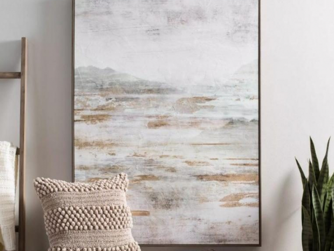 Our Golden Abstract Landscape Framed Canvas Art Print provides an ethereal quality to any space. You’ll fall in love with its soft hues and golden accents.