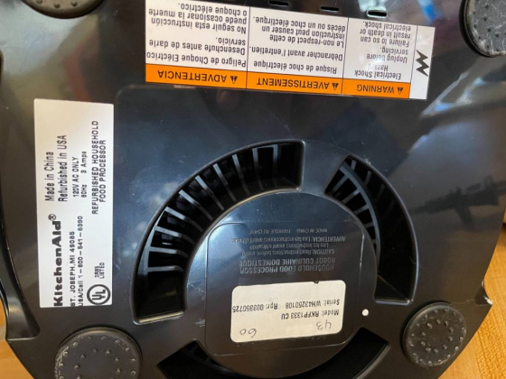 Refurbished Kitchenaid food processor. Barely used. Excellent working condition. All the information I have is shown in the pictures. $25 cash. Firm. Must pick up in Norcross.