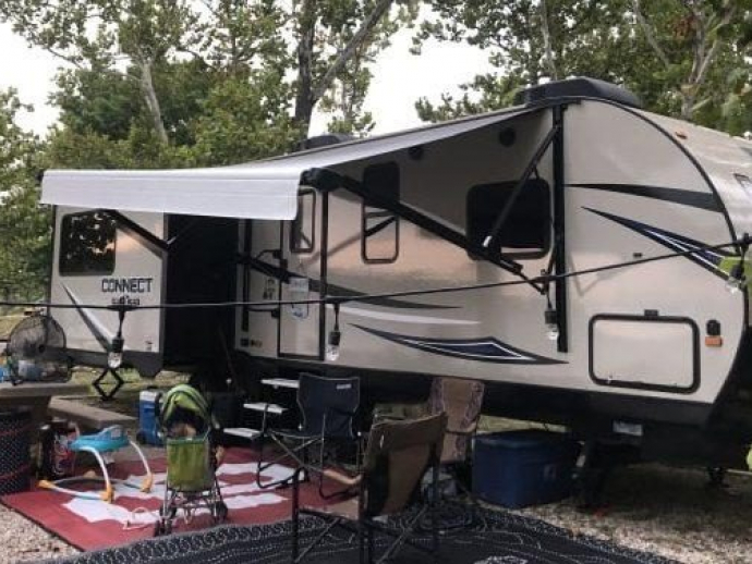 6 person trailer, 1 queen bed, 1 pull out bed, 2 recliners,dishes,cookware provided. Two Air conditioners. Needs a 50 amp camp site to run both AC’s. Can run off a 35 amp , but will only be able to run one AC. Bring queen sheets, pillows, towels .Rental delivery and set up.