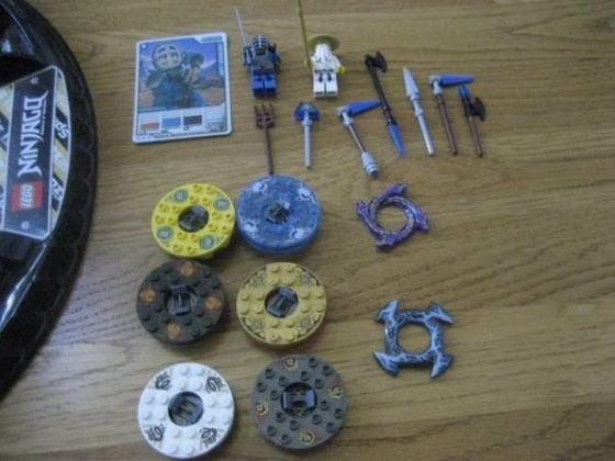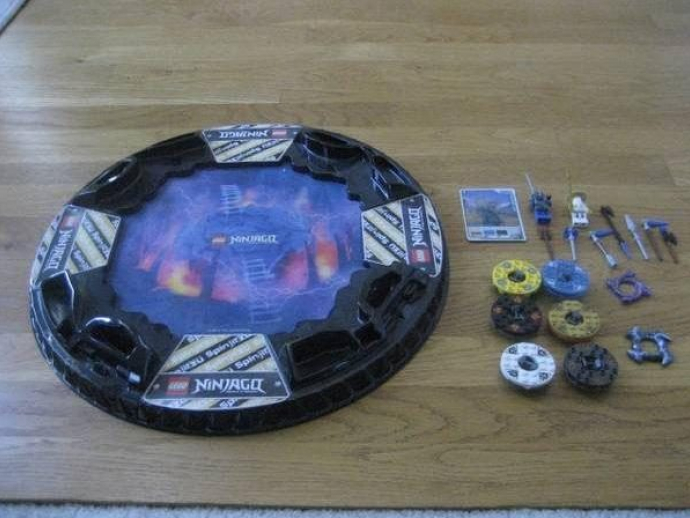 Includes spin base, 6 different spinners, 2 minifigures, and accessories. great condition