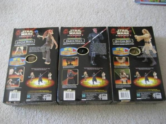 These are brand new and have never been out of the boxes. Boxes are in pretty good shape with only minor edge wear. Darth Maul does have minor creasing to 1 box corner.