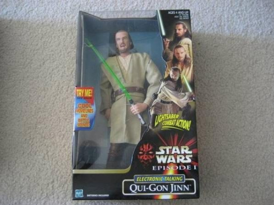 Included Darth Maul, Jar Jar Binks, and Qui-Gon Jinn. Darth Maul and Qui-Gon Jinn come with light sabers and Jar Jar Binks comes with an energy ball. The batteries seemed to have died in 2 of them, with only Jar Jar still talking. I guarantee that they all do talk.