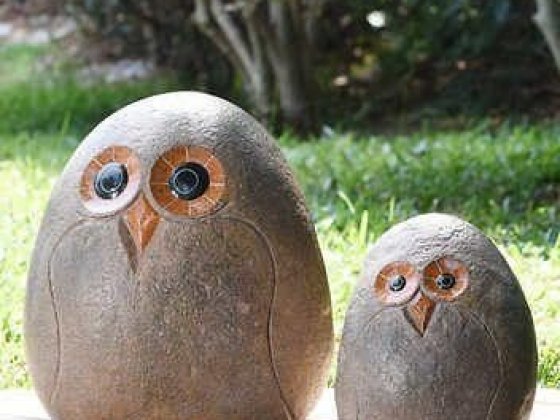 This adorable pair of owls adds a perfect whimsical touch to any outdoor area. The statues are made of high-quality stone composite material that can withstand the elements. The real stone look is created with a multi-layer, hand-painted finish in outdoor paint. Let these cute birds with their wide eyes bring a smile to everyone who sees them.