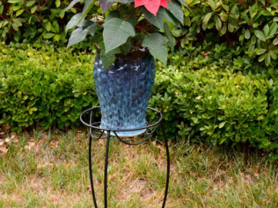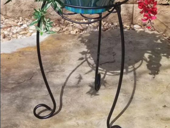 Style Selections 21-in H x 11.25-in W Black Outdoor Round Steel Plant Stand $13.98 New