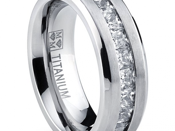 Titanium Men's Wedding Band Engagement Ring with 9 large Princess Cut Cubic Zirconia
