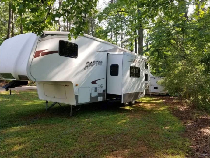 Sleeps Many! Two motorized king beds in Toy hauler area. Dinette converts to a full size sleeping area. Front sleeping area has queen bed. Private toilet and shower. Has a 5500 generator, 50 amp but has converter for 30 amp. We will take all the stress out of the set up and delivery. We deliver and set up with in Anderson and nearby areas for a $100 Delivery and Set up fee. Outside of Anderson additional fees will apply depending on mileage and current gas prices. 2 night minimum for Anderson and locations with in a 50 mile radius, outside of 50 miles it is a 3 night minimum. We have chairs, kayaks, golf cart, etc everything else needed for a perfect adventure. We rent alot for Clemson home football games, all you have to do is roll up and roll out leaving with wonderful memories. Call for pricing and questions.