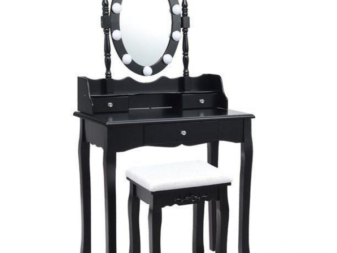 Topbuy Mirrored Vanity Table Set Lighted Makeup Dresser w/ Drawers Black