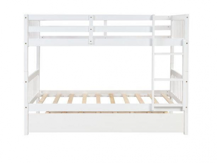 Twin Over Twin Convertible Bunk Bed, Teens Solid Wood Bedroom Bunk Bed, Guest Room Furniture, No Box Spring Needed, White, $527.99, New