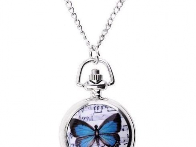 Women's Girl's Beautiful Butterfly Full Quartz Pocket Watch with Chain